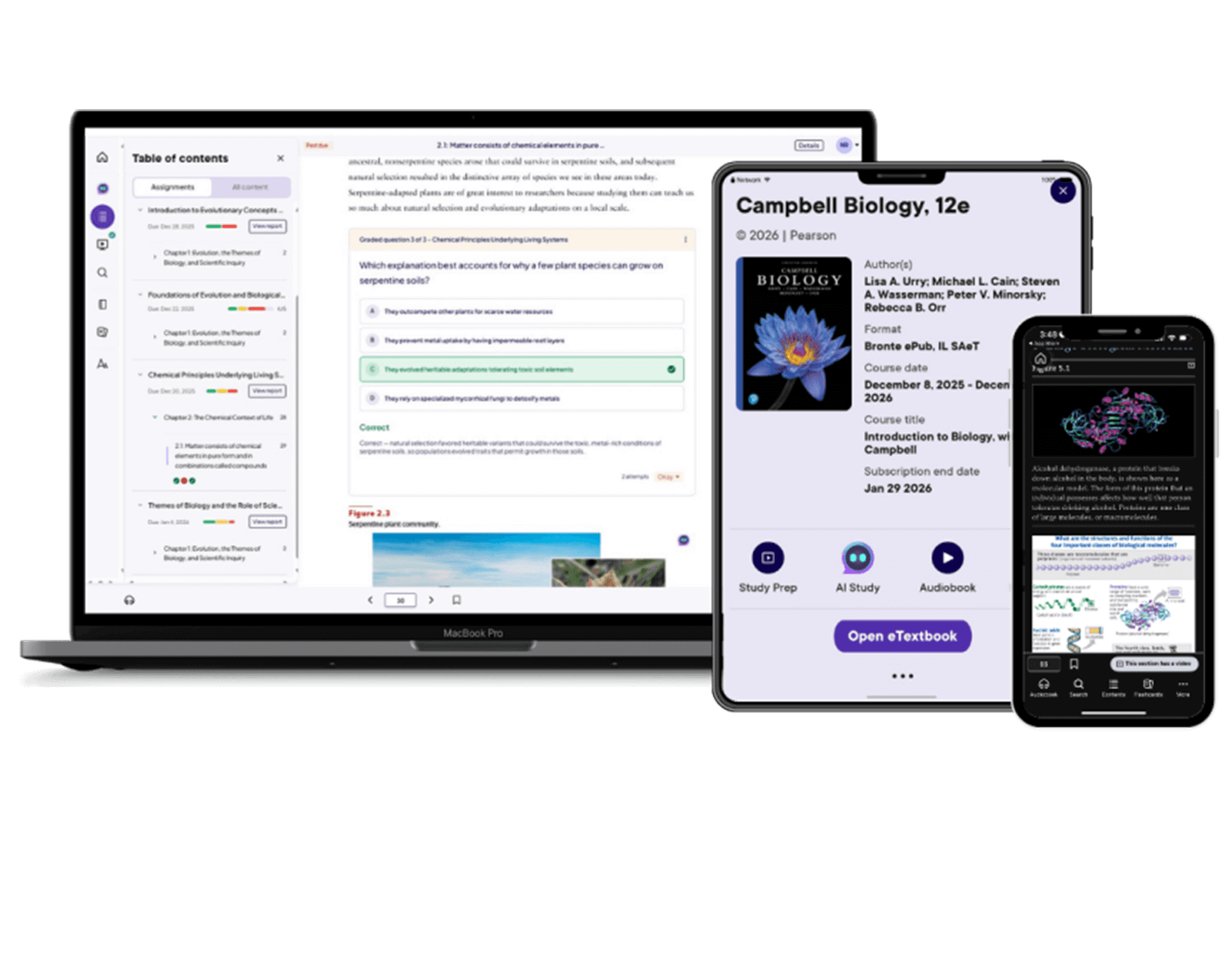 Designed to support how your students learn best, choose from 2,000+ Pearson eTextbooks to find the right fit for your course.